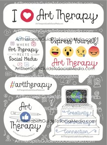 5 sticker sheets are up this week-end for a giveaway grab! To enter is simple: head over to The Art Therapist’s Guide to Social Media Book Page on Facebook and leave a comment on the giveaway’s featured photo pinned at the top of the page about how you use social networking for either connection, community, or creativity as an art therapist or art therapy student.